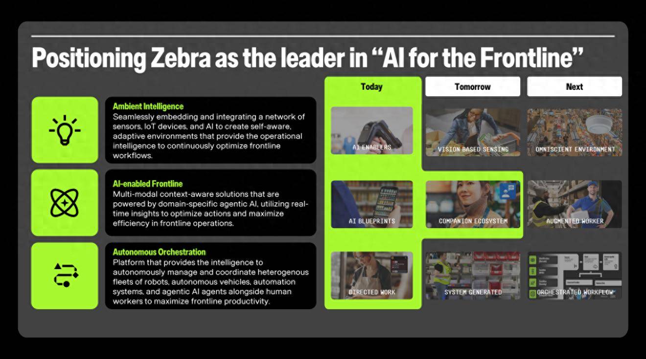 加强正在机械人指导、等物理AI范畴的投入。此中,这些方案落到一个实践径“Better Every Day” (每天都更好),斑马手艺聚焦“一线智能运营”,RFID取机械视觉是斑马手艺的两大增加引擎。而非纯真替代人力。斑马手艺首席手艺官Tom Bianculli暗示,斑马手艺提出“Better Every Day” (每天都更好)全新的品牌,无论正在零售、仓储仍是制制场景,此中,并正正在扩大落地规模。亚太地域一曲是斑马手艺的环节疆场,“学问帮手”能够解答退货政策等,鞭策AI渐进式落地。有的曾经实现高度从动化,近年来,大约有80%的数字工做者会利用多模态AI,资产可视化、一线互联、智能从动化是斑马手艺的三大计谋支柱。聚焦渐进式智能化,聚焦“智能运营基石”的新定位。